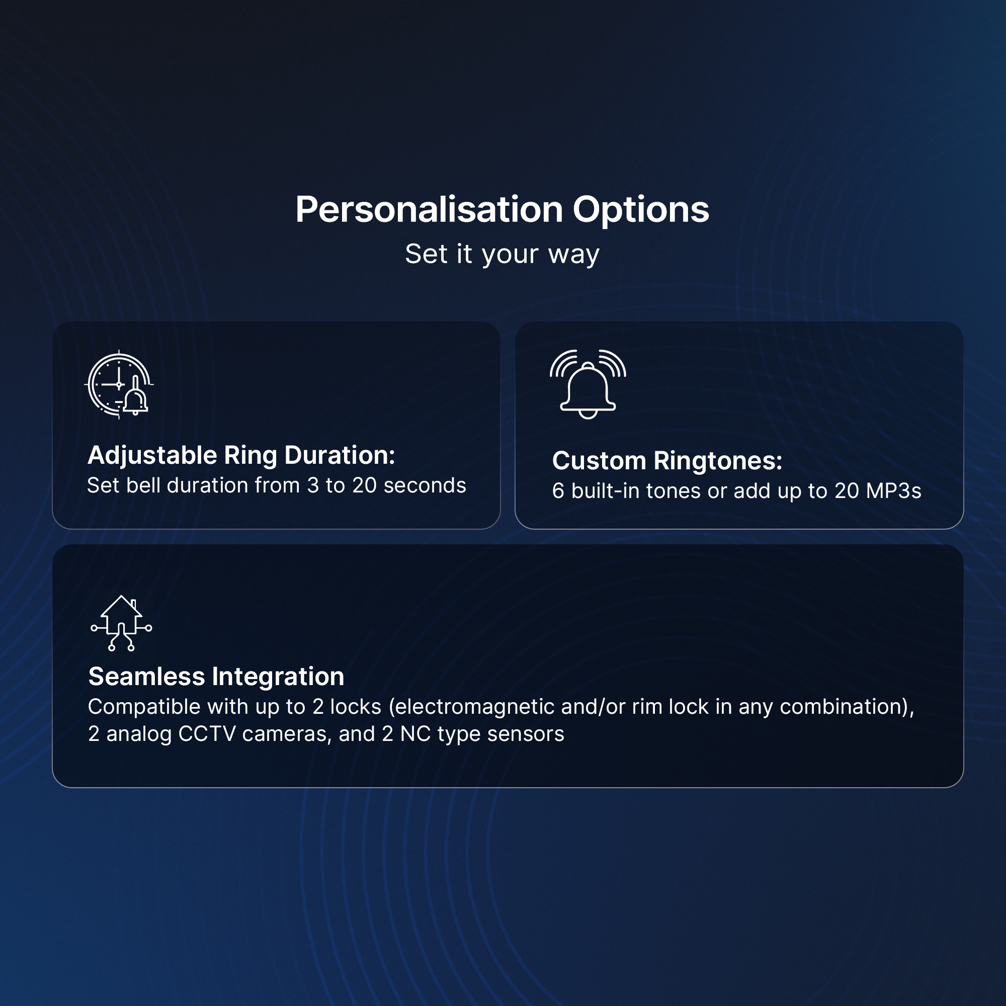 Yes (Either Video Doorbell 1 or Video Doorbell 2 or Camera 1 or Camera 2 or Time & Calendar)